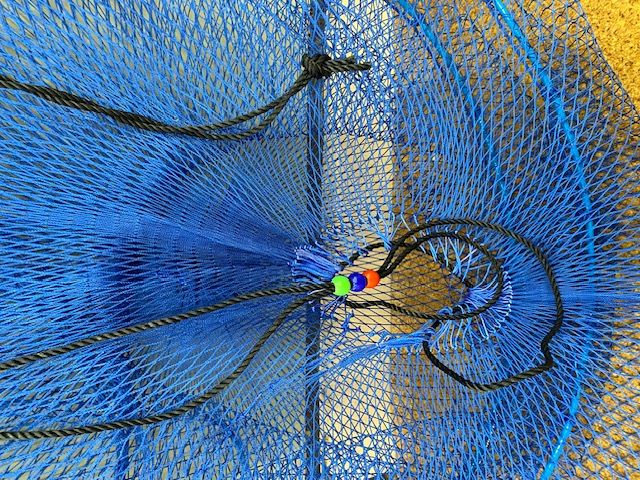 丈夫な日本製ポリあみ使用。見た目より広がり長持ちします。 深すぎず浅すぎず、エサのサザエなど3〜4kgに最適サイズです。